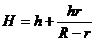 r is the radius of the base circle , h, H are the minimum and maximum heights , respectively, |
