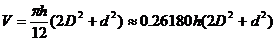 d is the diameter of the upper and lower bottom circles , D is the diameter of the middle section , and h is the height |