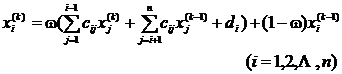 The other steps are the same as the simple iterative method . In the above formula, w is a constant, which is called relaxation factor . Proper selection of w can improve the convergence speed. Usually, w is taken as 1.5~2 (when w Î (1,2) is taken, it is called over-relaxation The iterative method, when taking w Î (0,1) , is called the low-relaxation iterative method) .