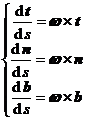 This set of formulas combined with = t describe the motion law of the movable frame when the point M moves on the curve .![]()
